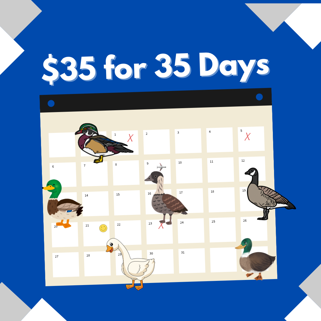 Shipping NOW!!!All proceeds go towards rescuing, raising and loving Domestic ducks! 5 for $20 Raffle Tickets (Duck-A-Palooza) $20.00 1 Raffle Ticket (Duck-A-Palooza) $5.00 Sponsor a day of feed! $35.00 Micro Blimps X Longbottom Bird Rescue T-Shirt $30.00 2025 Bird Sponsor $120.00 Button $3.00 “Don’t Chuck Ducks” Bumper Sticker Sale Price: $2.00 Original Price: $4.00 Sale