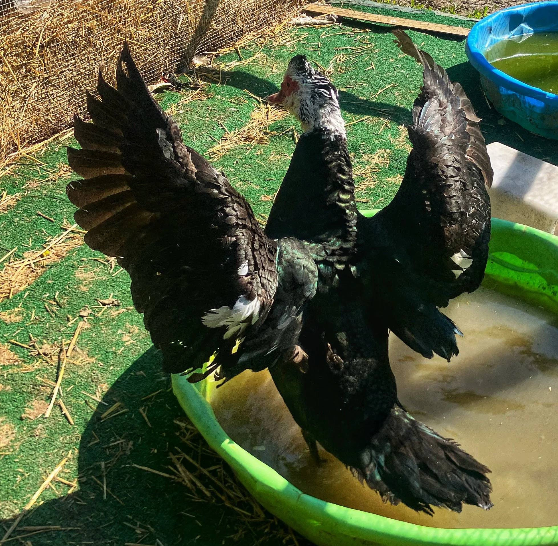 Bumble is an older Black Swedish male. He was surrendered to us after losing his flock to predators. He's a gentle soul and a great member of our ambassador duck team.